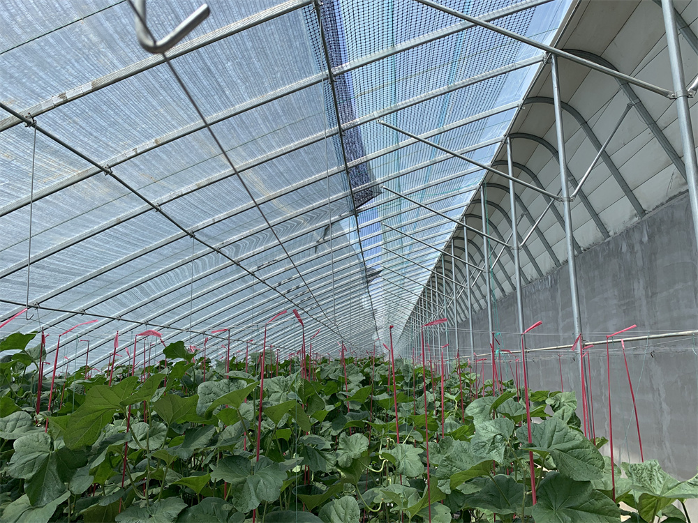 前坡面夜間用保溫被覆蓋,東、西、北三面為圍護(hù)墻體的單坡面塑料溫室,統(tǒng)稱為日光溫室。其雛型是單坡面玻璃溫室,前坡面透光覆蓋材料用塑料膜代替玻璃即演化為早期的日光溫室。日光溫室的特點(diǎn)是保溫好、投資低、節(jié)約能源,非常適合我國經(jīng)濟(jì)欠發(fā)達(dá)農(nóng)村使用。